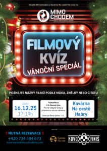 Kvíz se uskuteční v pátek 24. 10. 2025 od 17.00 v Kavárně Na cestě, je nutná rezervace míst předem na tel.: 734 594 673 nebo na e-mailu: rezervace@mimochodem.com